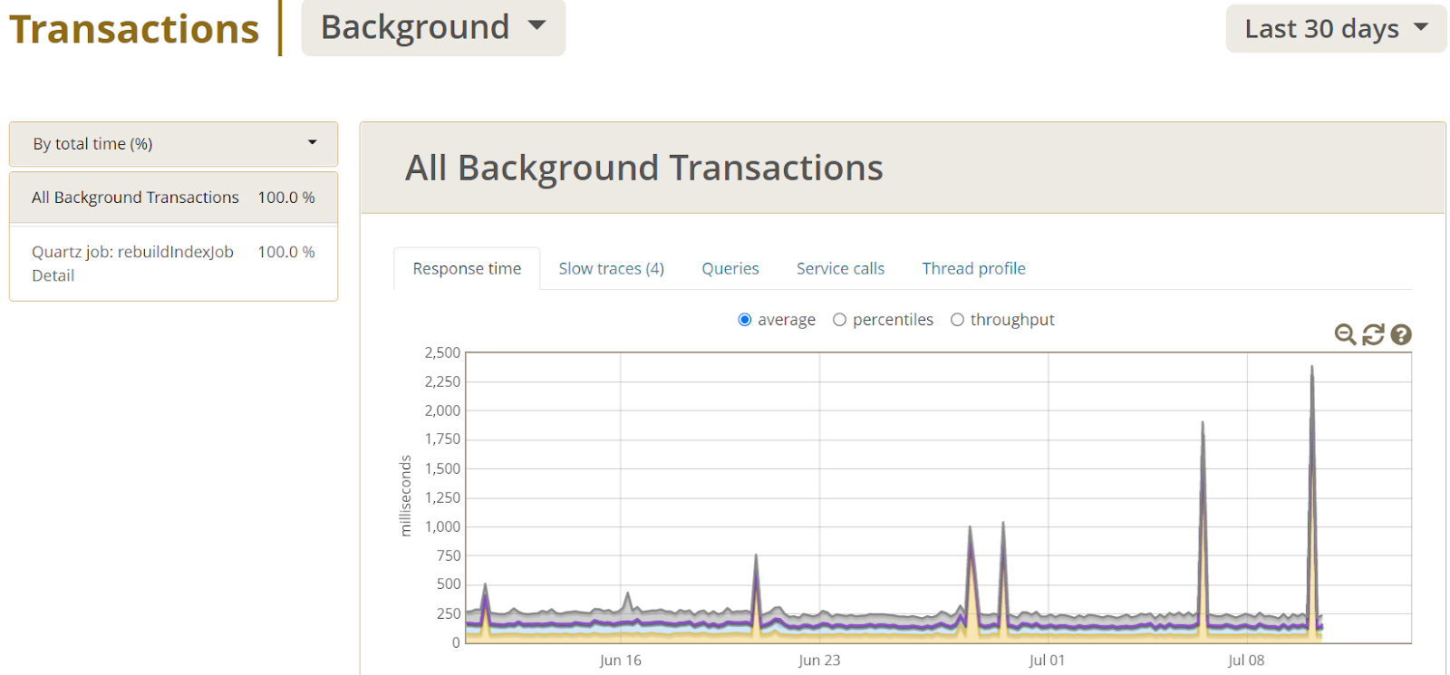 Glowroot is an open-source APM tool to monitor Java-based applications that is very easy to use. Due to extensive micro-benching and tuning of Glowroot itself, it has very low overhead, generally in the low microseconds.